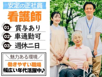 【枚方市】週休二日|車通勤OK|老人ホーム|看護師|正社員