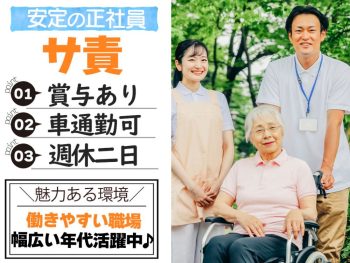 【東大阪市】週休二日|車通勤OK|老人ホーム|サ責|正社員