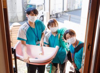 お仕事内容は、入浴備品の搬入出、入浴介助、洗体などをお願いします。