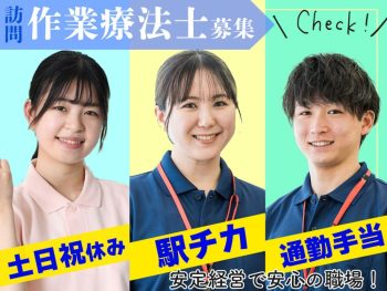 | 職種 | お休みもしっかり|訪問リハビリ|作業療法士|正社員 |