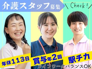 給与 月給 193,800円〜220,200円 ※(資格手当・処遇改善手当・ベースアップ手当含む) 交通 《電車でお越しの方》