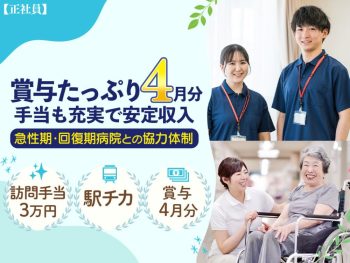 昇給あり月給21万円以上可能賞与あり(年2回以上)駅チカ●藤井会訪問看護ステーション● 【理学療法士】在宅リハビリ|安定収入 ★賞与4ヶ月分の高待...もっと見る -
