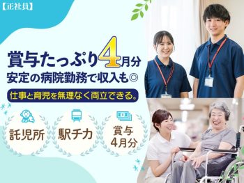 昇給あり月給21万円以上可能託児施設あり賞与あり(年2回以上)駅チカ枚岡病院 【託児所あり】看護師|子育てと両立 ★賞与4ヶ月分の高待遇 ★駅徒歩4分の好立地...もっと見る -
