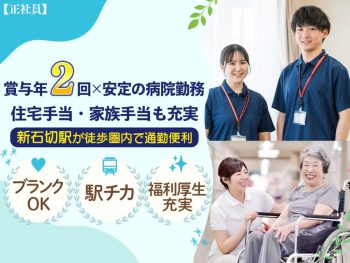 日勤のみ昇給あり月給21万円以上可能賞与あり(年2回以上)駅チカ石切生喜病院 医療法人藤井会では、患者さまやご家族の笑顔は、 そこで働くスタッフが安心して...もっと見る -